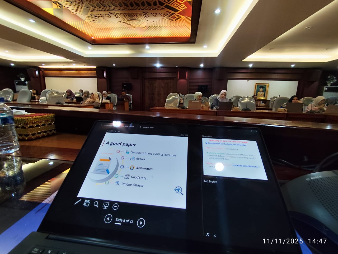 Workshop Penulisan Artikel Ilmiah ini dimoderatori oleh Kepala Pusat Publikasi dan Kerjasama LPPM Unila. Sesi diskusi berfokus pada teknik penulisan abstrak yang menarik, metodologi penelitian yang kuat, hingga strategi memilih jurnal yang tepat (terindeks Scopus/WoS) dan kiat-kiat sukses menghadapi proses peer-review.